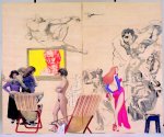 Cosa poi significhi tutto questo, cosa significhi questa pittura “cosa”, questo dipingere con attenzione i particolari, questa ipertrofia dei corpi e degli oggetti è difficile a dirsi. Probabilmente tutto questo si iscrive in un desiderio di ritorno a culture meno globalizzanti, meno post industriali, meno “servizi” e più “terra”, “nostra madre terra”. Anche se, visto il clima politico italiano, un certo qual gusto di restaurazione dagli eccessi dell’arte depravata una mostra così può ricordarlo ad alcuni. D’altronde se questo non fosse un clima generale dell’occidente, ma solo un tratto italiano, questa coloritura politica forse avrebbe un senso, ma visto che tutti in America ed Europa stanno riapprezzando un ritorno al figurativo, questa tentazione dietrogiochista non vale.