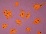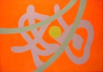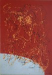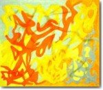 Bellissimi i collage degli anni settanta, per esempio, quando sulla tela insieme all’olio steso con pazienza e precisione univa carte colorate a formare danze di leggerezza viennese. La sua pittura si muove nella esplorazione continua delle possibilità del colore, unita ad una sensibilità per tutte le forme della calligrafia. Il segno in lui, infatti, è graffio, scivolamento di mano, segnale, più che segno, che una attività segnica è possibile, è data, esiste, a dispetto del colore e dentro il colore. Noi siamo un nulla all’interno del flusso della vita, sembrano dire spesso i suoi quadri. Un nulla che apparentemente ha molto da dire, significa molto e richiama ombre, corpi, apparizioni, oppure scritte, ideogrammi, segnali. Apparentemente, però, dato che il senso del segno sta solo nell’esserci, nell’essere segno, nel mostrarsi per poi scomparire travolto dai rossi e dai gialli.