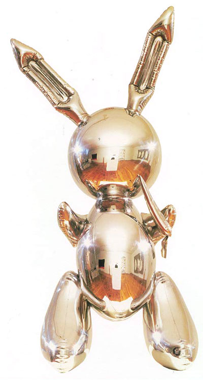 Ora dall’intervista col grande Jeff apprendiamo che, come il sommo Wharol, anche lui ha fondato una factory, nella quale lavorano 135 assistenti, grazie ai quali realizza ogni anno 10 quadri e 8 sculture. Non tutti, infatti, coloro i quali vogliono un Koons (e possono pagarlo) possono aver un Koons. La qualità, ci rassicura, viene mantenuta con un controllo assoluto dei processi di produzione. Bene. Ce ne rallegriamo.