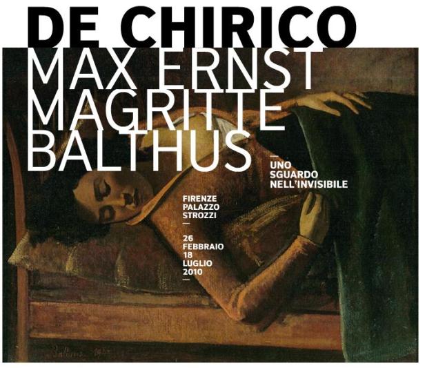 Scopro oggi attraverso una bella intervista pubblicata dal Corriere (versione in stampa e non online) al Direttore Generale della Fondazione Palazzo Strozzi di Firenze che dal 26 febbraio al 18 luglio è in corso una mostra dal titolo “Uno sguardo sull’invisibile” che ospita, tra gli altri e principalmente, opere di De Chirico, Ernst, Magritte e Balthus.