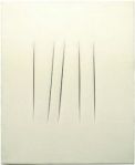 Tutte e due, l’uno (Burri) in maniera più evidente stante la maggiore complessità che normalmente contraddistingue la costruzione spaziale delle sue opere, l’altro (Fontana) in maniera più raffinata e intellettuale (ma non per questo meno significativa ed lampante), si sono sempre mossi nel solco della classicità italiana, innovando in questo una tradizione fatta di compostezza compositiva e di equilibrio di masse e forme.