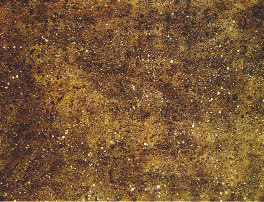 And painting my little rounds (sassolini, Diego’s definition), I think to Mr Pollock’s invention, his gesture, his discovery that when one looks at a painting he notes the force of the brush-stroke together with colour, thickness and so on. I think to Mr Boccioni’s and Mr Balla’s willness to catch the movement, exactly, with other means, as did years later Mr Picasso (overall with Crying Lady). I think to Mr Debuffet’s deserts of signs (and siennas).