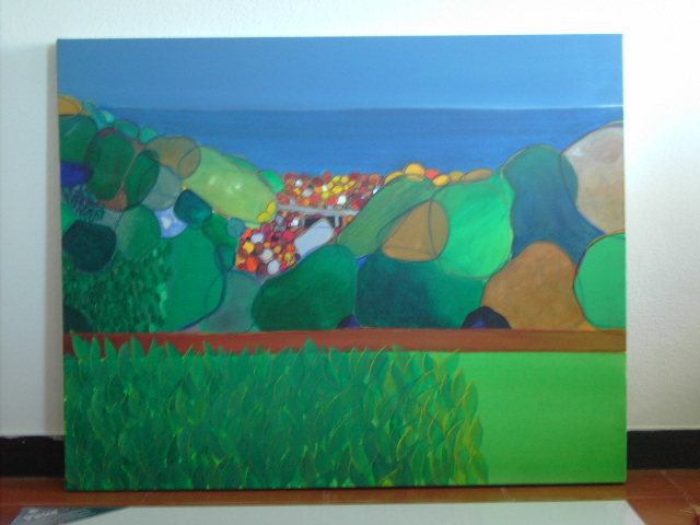 Dipinto poco questa estate. Tre cose. Un tentativo di nudo. Un quadretto sul tema noi e gli altri (e il mediterraneo) e un grande tentativo di paesaggio.