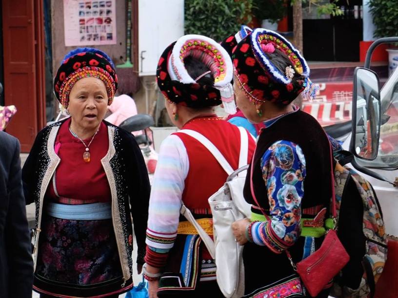 Gli Han, il gruppo etnico principale della Cina, è solo circa la metà degli abitanti dello Yunnan e l’esito di migrazioni recenti. Popolazioni di etnia Bai, Yi e Hui sono prevalentemente concentrate nella regione di Dali. Le donne Bai hanno mantenuto i loro vestiti tradizionali: si vestano in tuniche rosso brillante, grembiuli multicolori e cappelli complessi con molti fiocchi, nastri intrecciati e tessuto nei capelli. I costumi variano molto a secondo dello stato civile e dell’età. Le donne sposate e anziane si vestono di blu.