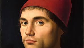 Cosa ci insegna Antonello? Da un punto di vista sociale che vivere in un centro minore costringe a cercare committenti tra le persone più umili. La scelta di questi numerosi ritratti di gente comune poteva certo dipendere da una sensibilità sociale maggiore, ma immagino che sia stata largamente dovuta anche a ragioni di bottega. Da un punto di vista pittorico che in ritrattistica lo sfondo nero (nei pittori contemporanei era da sempre neutro, ma non nero) fa ancor più e meglio risaltare la vivacità del viso. E ancora: che una tecnica eccellente (simile a quella di Vermeer – entrambi figli di Piero della Francesca) non garantisce capacità di sviluppo della superficie pittorica. Quando Antonello esce dalla ritrattistica le sue composizioni sono classiche, statiche, potrei osare anche un banali. Non sta lì la sua massima qualità, che invece incanta per gli sguardi, le velature della barba, le sopracciglia.