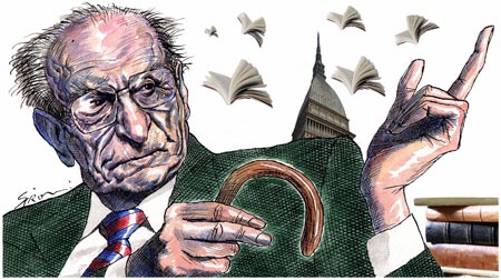 Fabio: A questo proposito posso raccontare il metodo di Ugo Guarino quando doveva illustrare le lettere a Montanelli sul Corriere della Sera. Era straordinariamente semplice ed efficace. In apparenza il testo appariva spesso privo di ” appigli “, ma Ugo arrivava sempre al cuore del disegno. Leggeva con attenzione lo scritto poi prendeva spunto da un particolare, da un vocabolo. Per dire: se leggeva il nome di Stalin raffigurava dei baffoni, se invece notava la parola sanità disegnava due cerotti o un piedone di gesso e così via. Non sbagliava mai un colpo ed è stata per me una