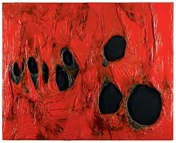 Certo un quadro e soprattutto un titolo come quello di Paladino (silenzioso, mi ritiro a dipingere in quadro) per così dire sommessamente urla e reclama la necessità, l’urgenza di un ritorno alla pittura, ai quadri, all’aspetto bidimensionale dell’espressione artistica che inevitabilmente è stata letta come un rifiuto e una distanza dai lavori di Kounellis Penone o Burri.