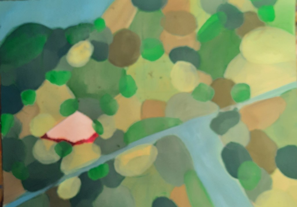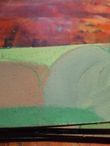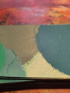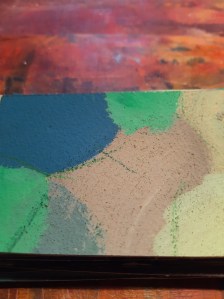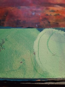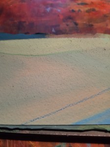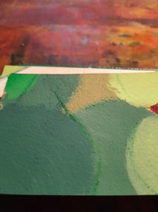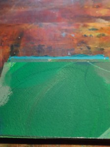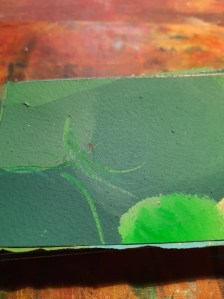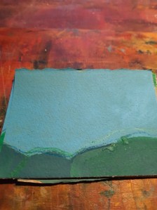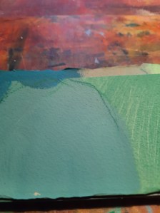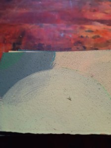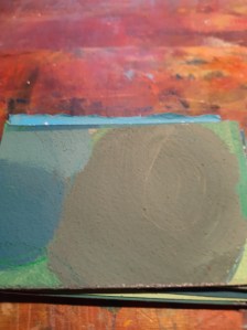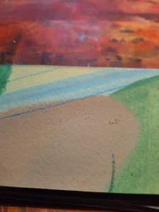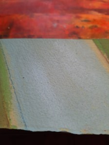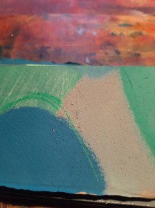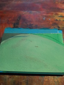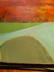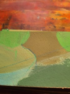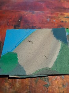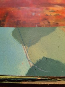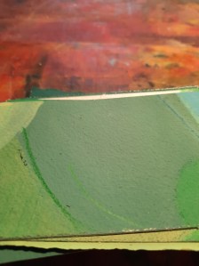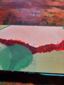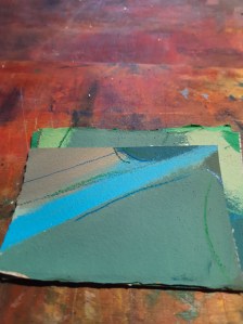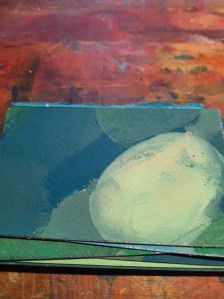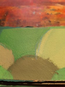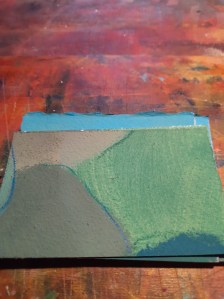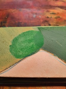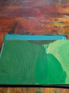 Quest’anno ho invertito il processo: ho dipinto un’unica opera (la collina di fronte al moo sgudio) che poi ho scomposto in 42 biglietti d’auguri. Un’unica opera scomposta, adesso, in 42 piccole opere.