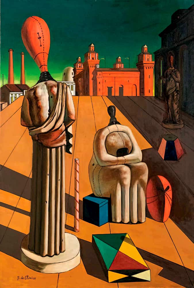 Le forme delle Muse, lo stesso dipinto, diverranno un punto di riferimento del Movimento Surrealista, che nasce sei anni dopo. Lo straniamento di fronte a un oggetto sospeso tra vita e morte, la realtà e la sua rappresentazione (il palcoscenico) i segni segreti nascosti negli oggetti posti nella composizione.
