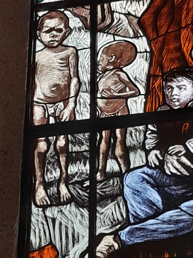 Qui di seguito una galleria che spero, nella sua inegaduetezza fotografica, dia comunque idea della forza, dello splendore, dell’intensità, della complessità di quest’opera. 20 grandi vetrate più alcune minori per 160 metri quadri di Arte. Ecco qua:
