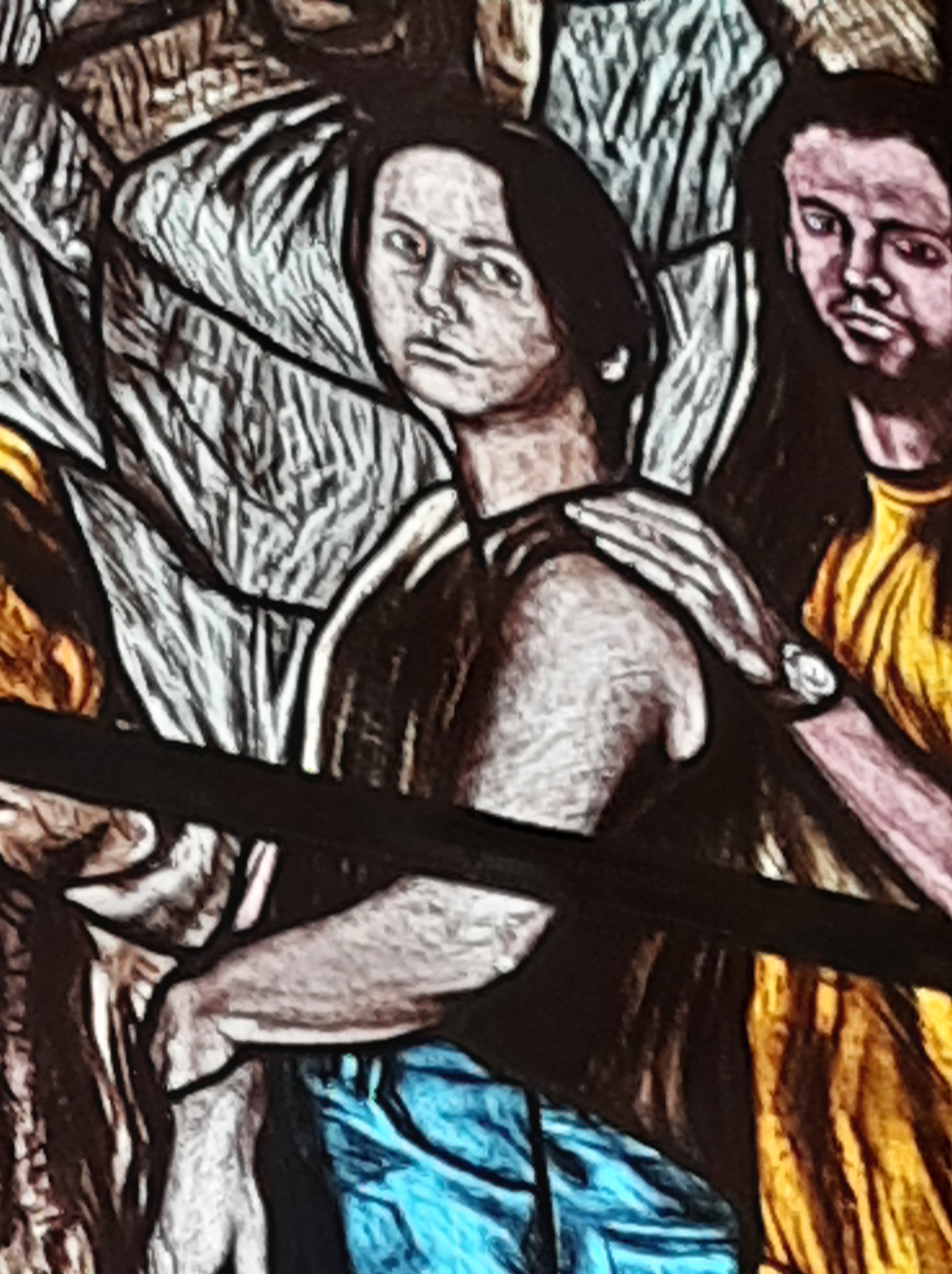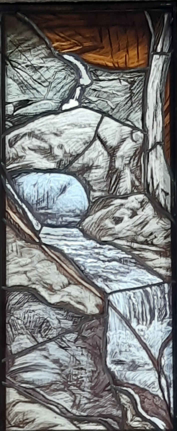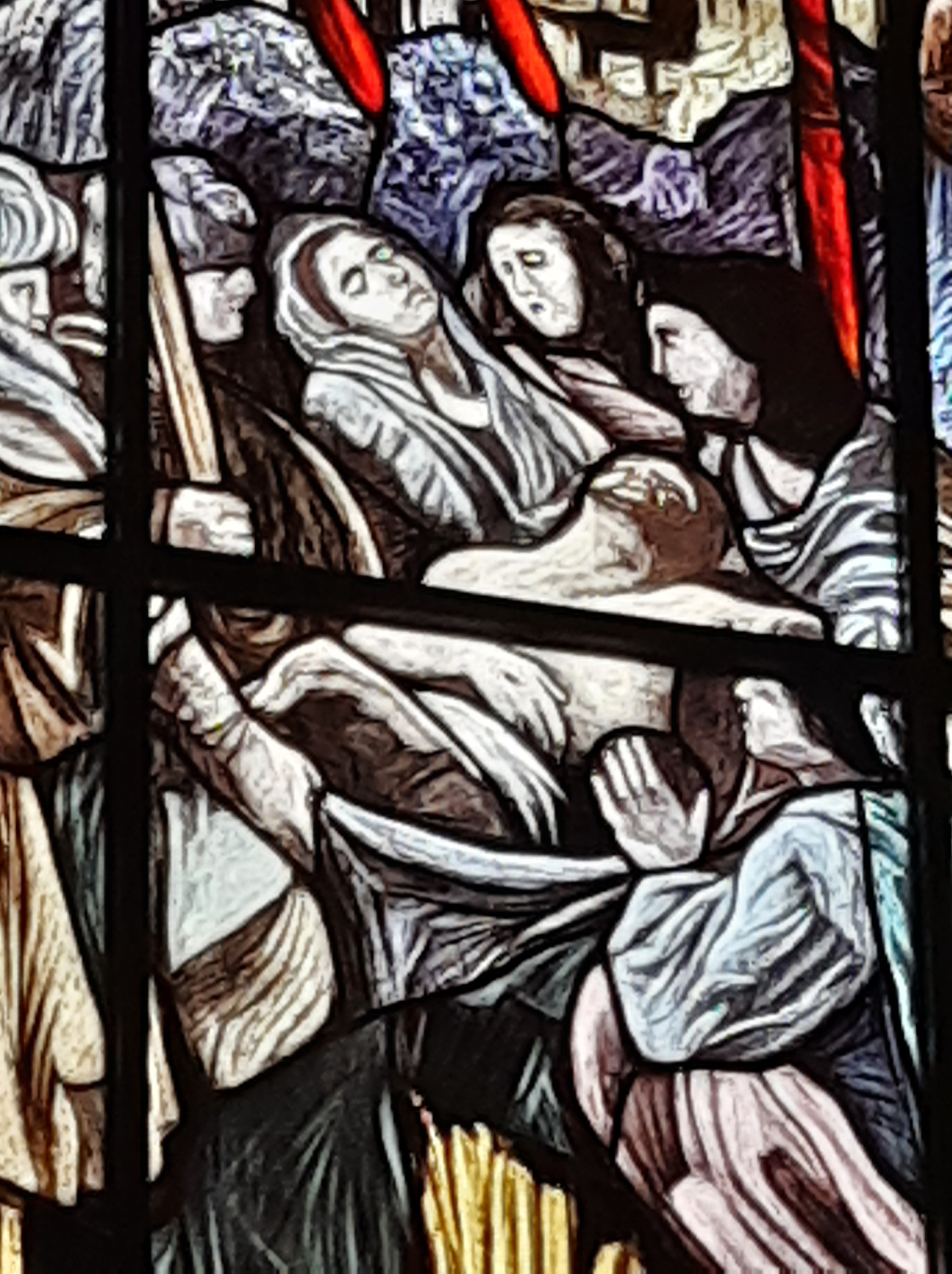 Di Giovanni ho più volte scritto su questo blog. Un maestro nella incisione e nella pittura. Le vetrate vanno viste con piena luce, meglio al mattino o a mezzogiorno, dato che il lato maggiormente esposto alla luce della Chiesa è ad Est.