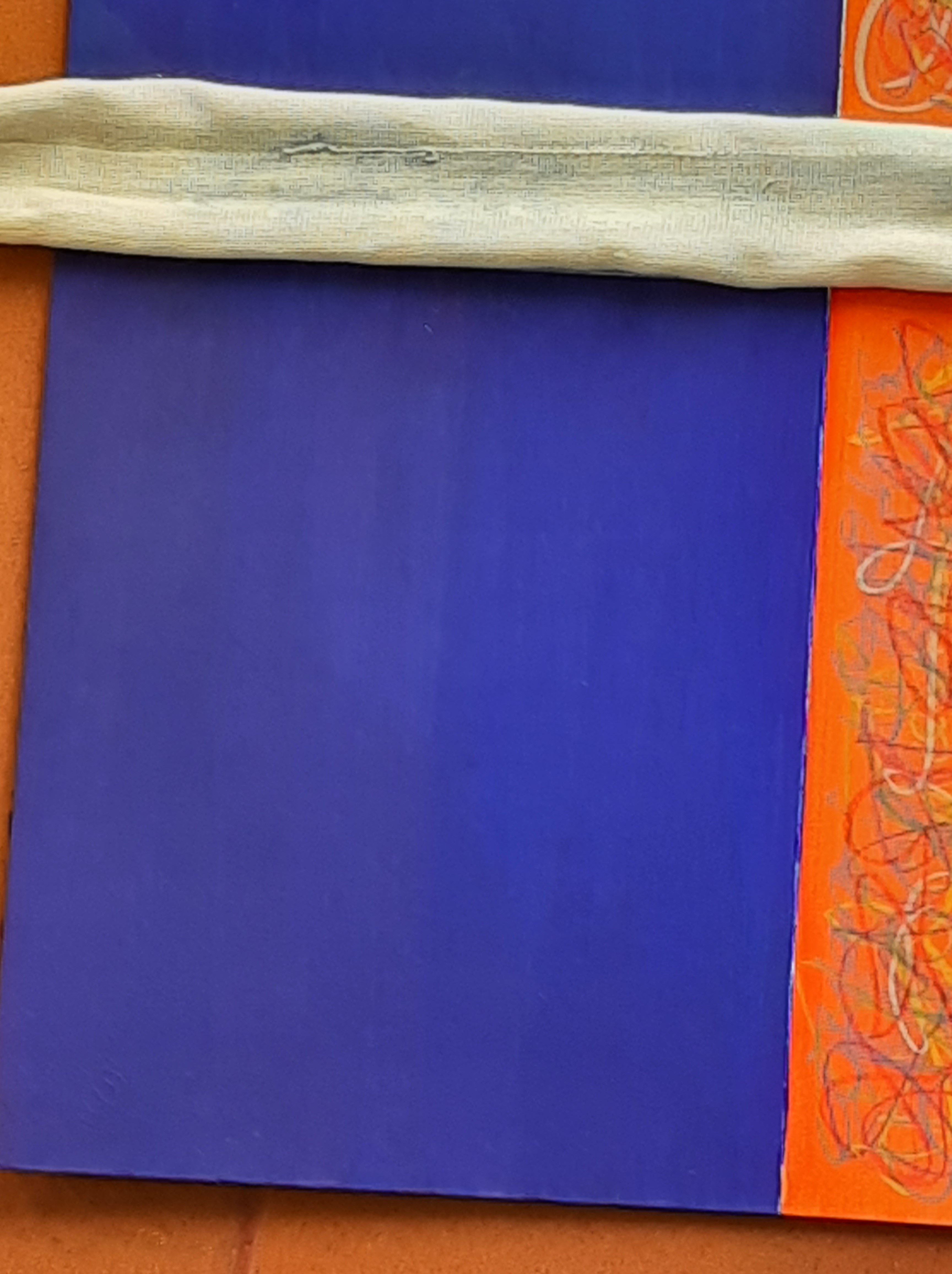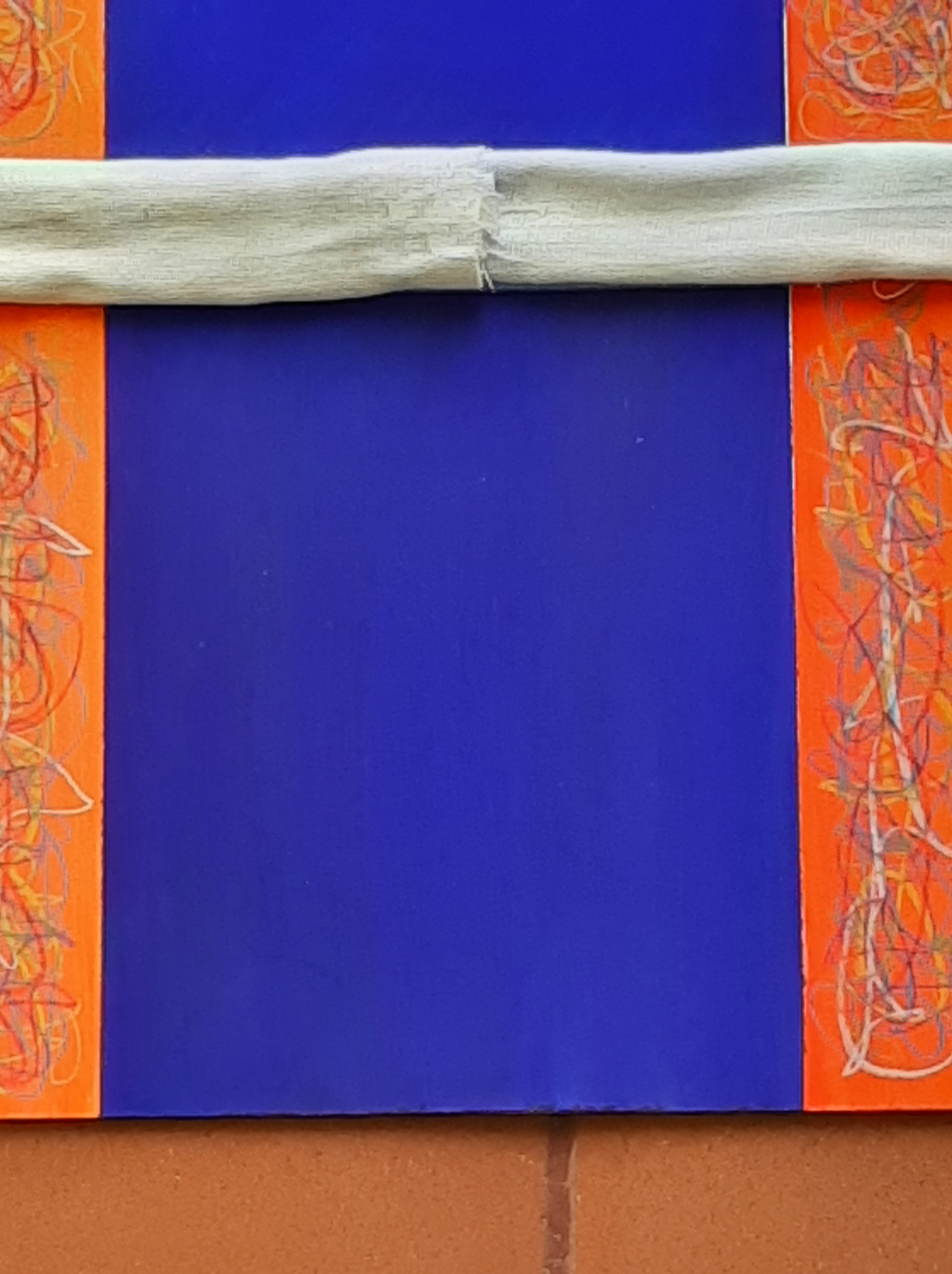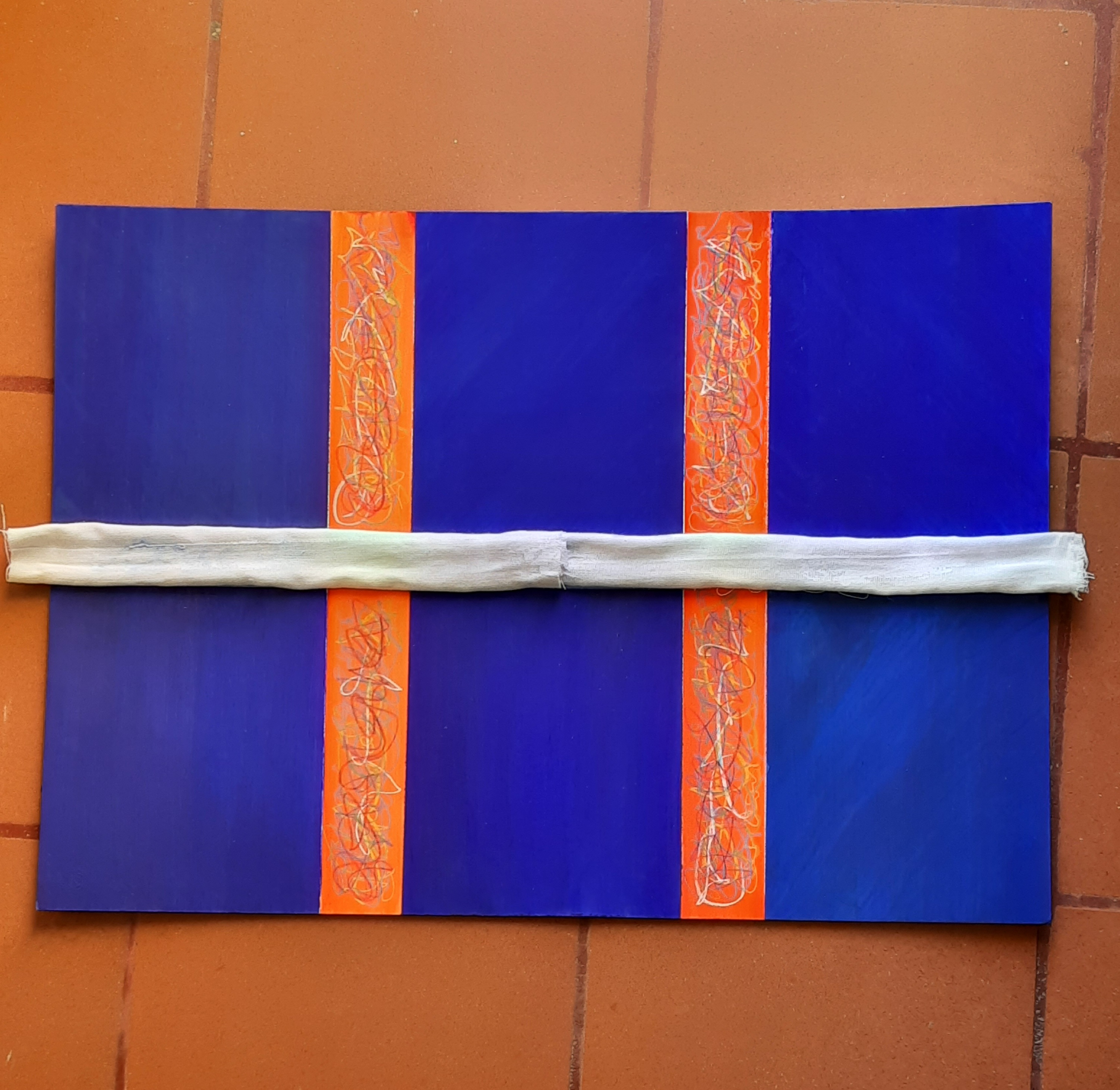 Quello che ne è uscito fin qui è un 70×50, composto da 6 rettangoli oltremare (e non solo) suddivisi da campi di segni e parole. Eccolo.