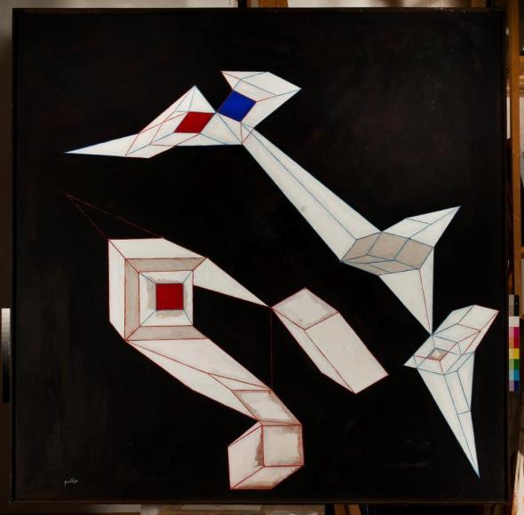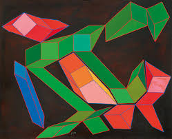 Dal punto di vista pittorico, che è quello che qui importa, la sua è stata una pittura di colore e geometria, per certi versi simile, invero, a quella di Dorazio, ma, mentre quest’ultimo, cogliendo la natura fluida del colore, lo ha declinato in quelle che la matematica e la topologia definiscono strisce o nastri, Perilli è rimasto agganciato alla fisicità impalpabile delle figure geometriche tradizionali, utilizzando, quindi, il colore come elemento decorativo di quelle stesse figure.