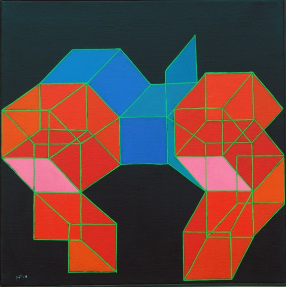 Dal punto di vista pittorico, che è quello che qui importa, la sua è stata una pittura di colore e geometria, per certi versi simile, invero, a quella di Dorazio, ma, mentre quest’ultimo, cogliendo la natura fluida del colore, lo ha declinato in quelle che la matematica e la topologia definiscono strisce o nastri, Perilli è rimasto agganciato alla fisicità impalpabile delle figure geometriche tradizionali, utilizzando, quindi, il colore come elemento decorativo di quelle stesse figure.