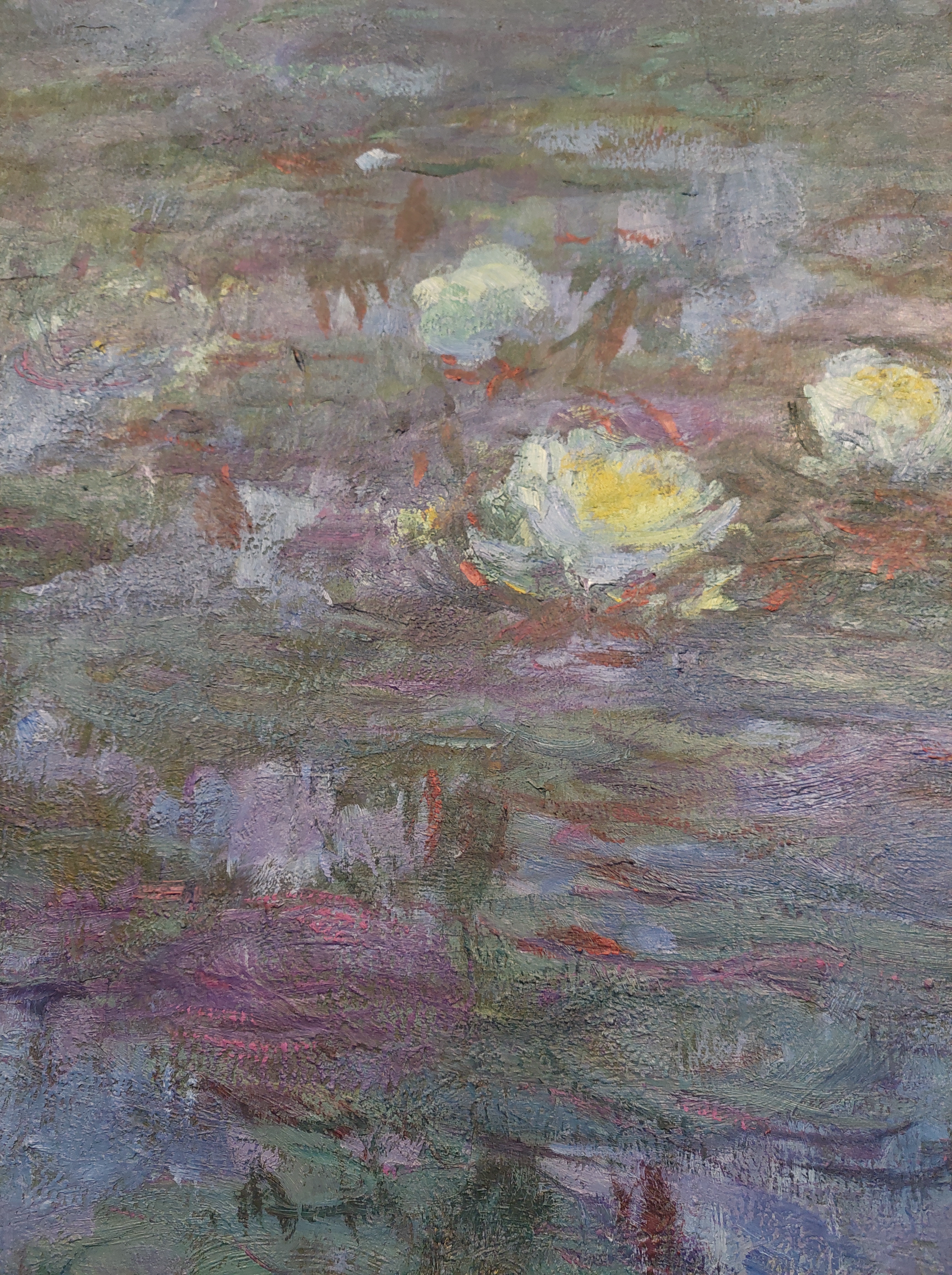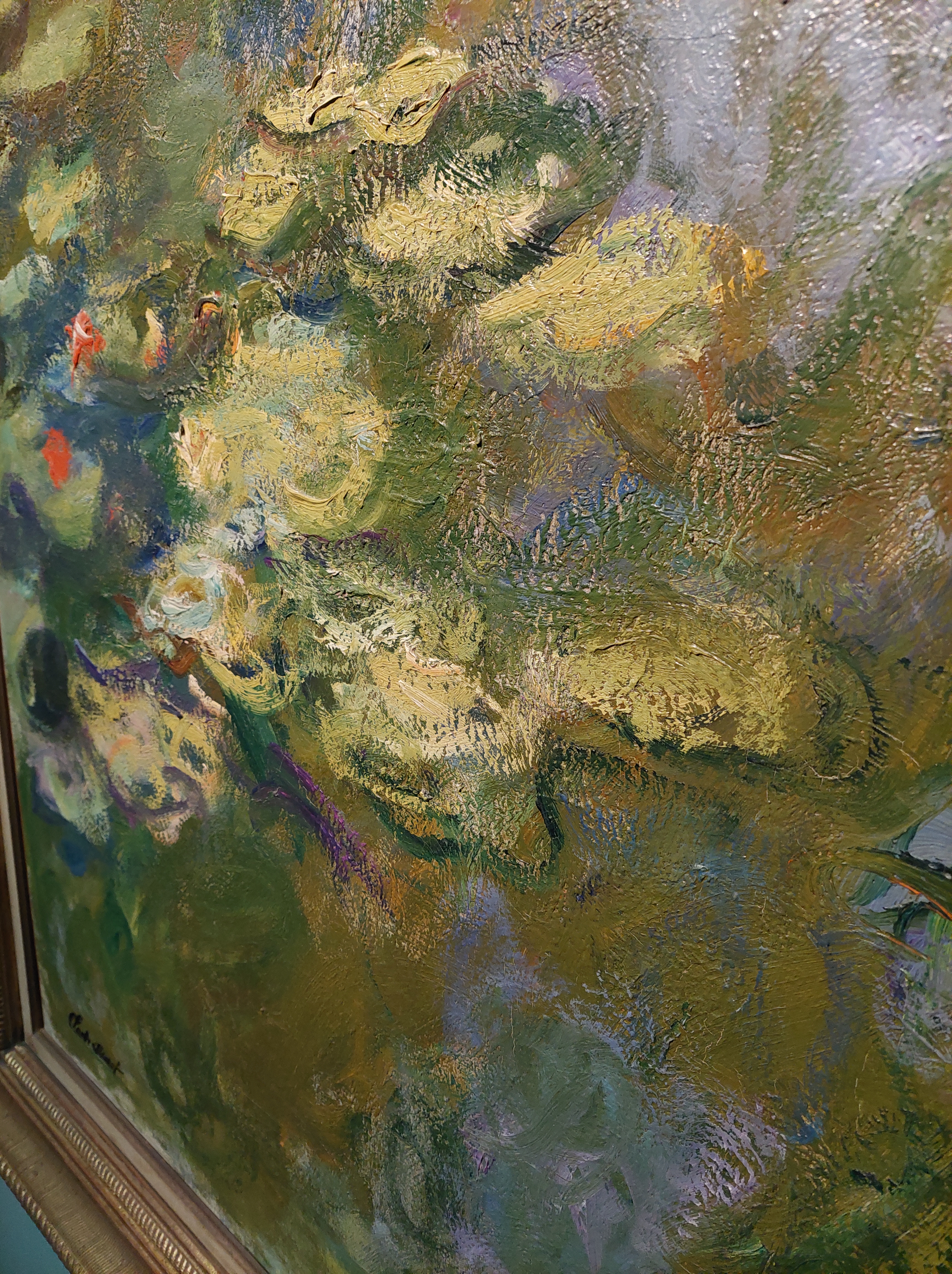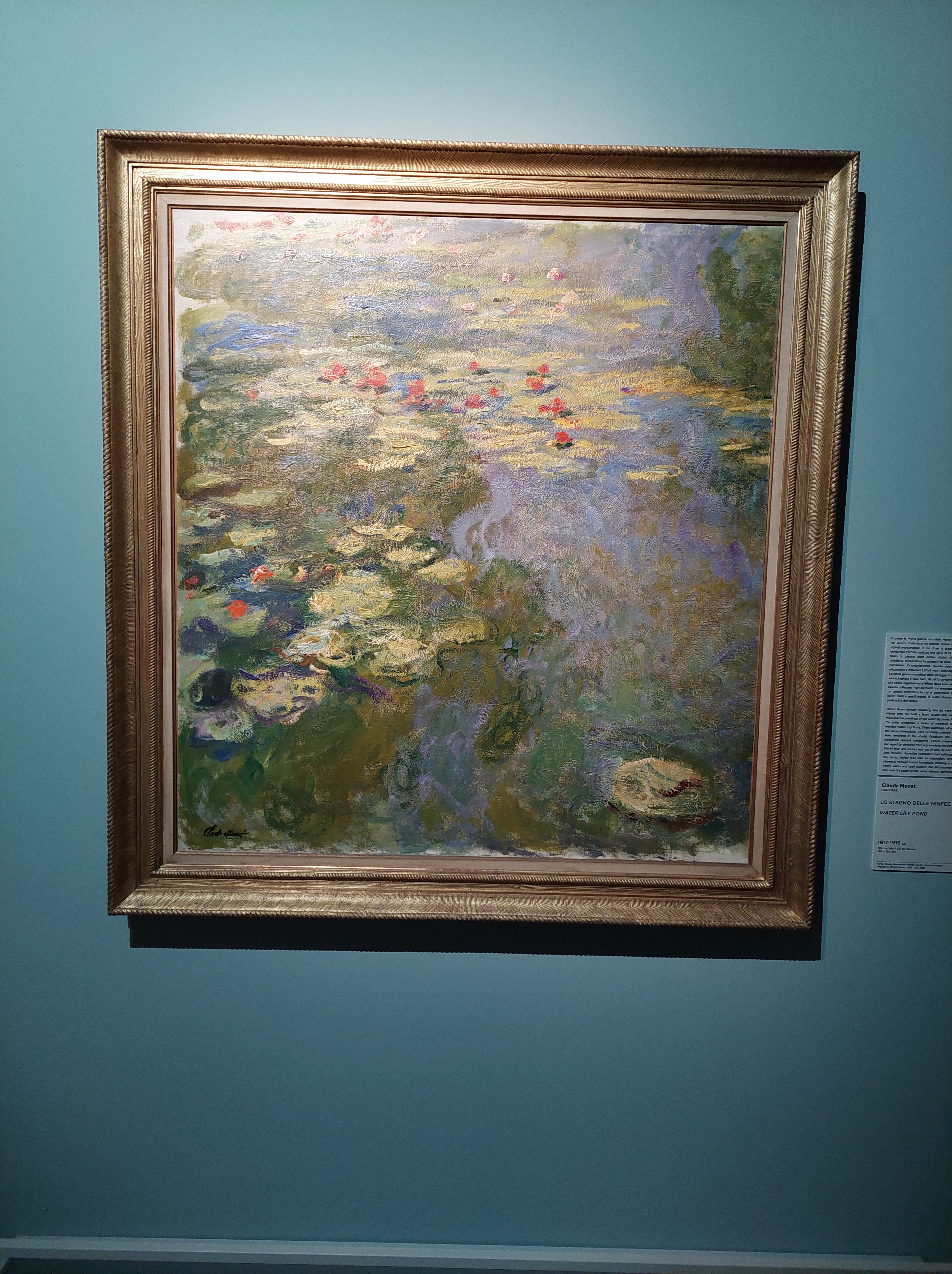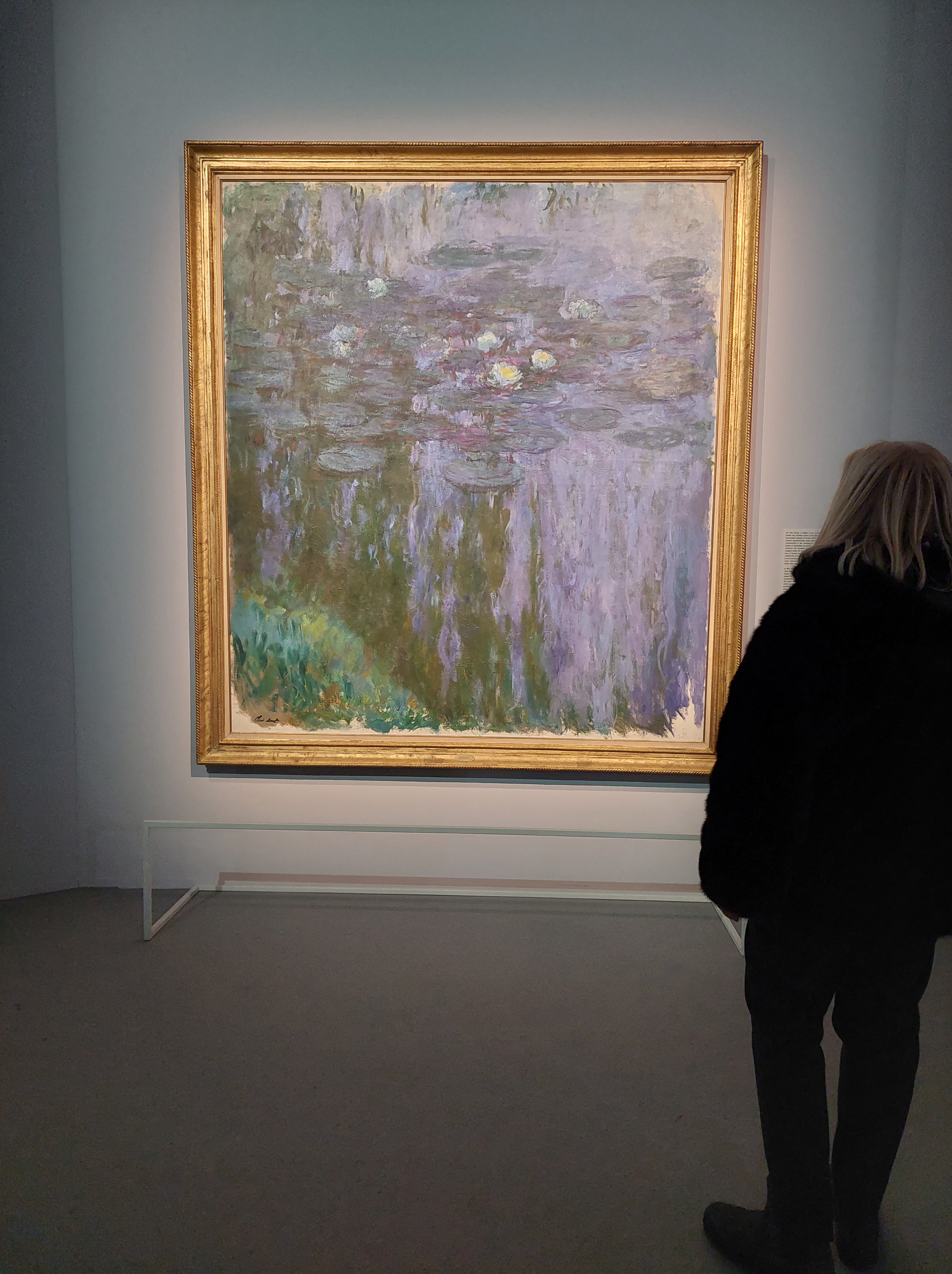 Le ninfee del 1916/1919, quadro ad olio di 130×152, commuove fino alle lacrime. Guardandolo, osservandolo, il parlottio degli altri visitatori cede al silenzio. Dalla tela emerge con chiarezza la calma e la maestosità sottile della natura.
