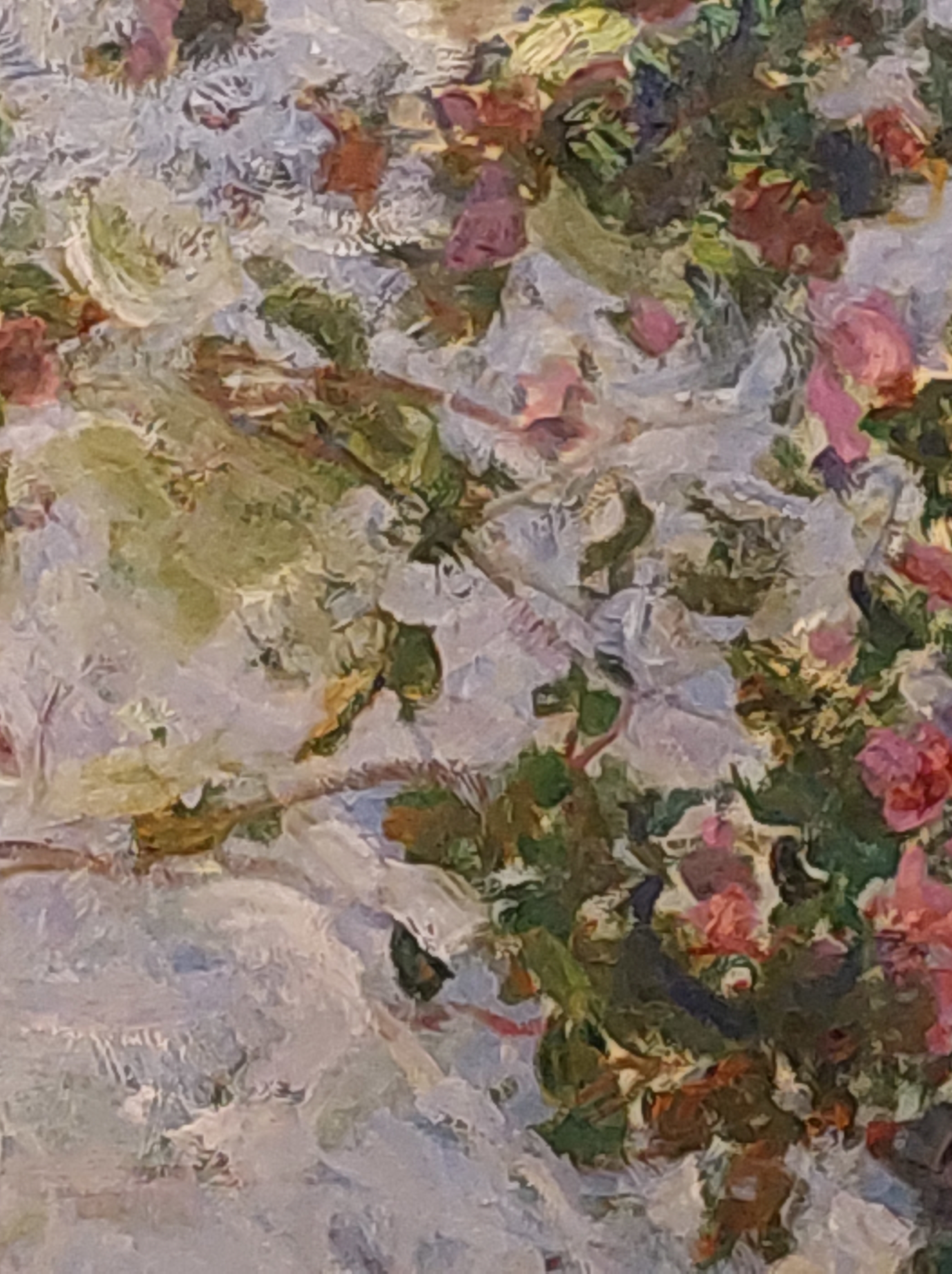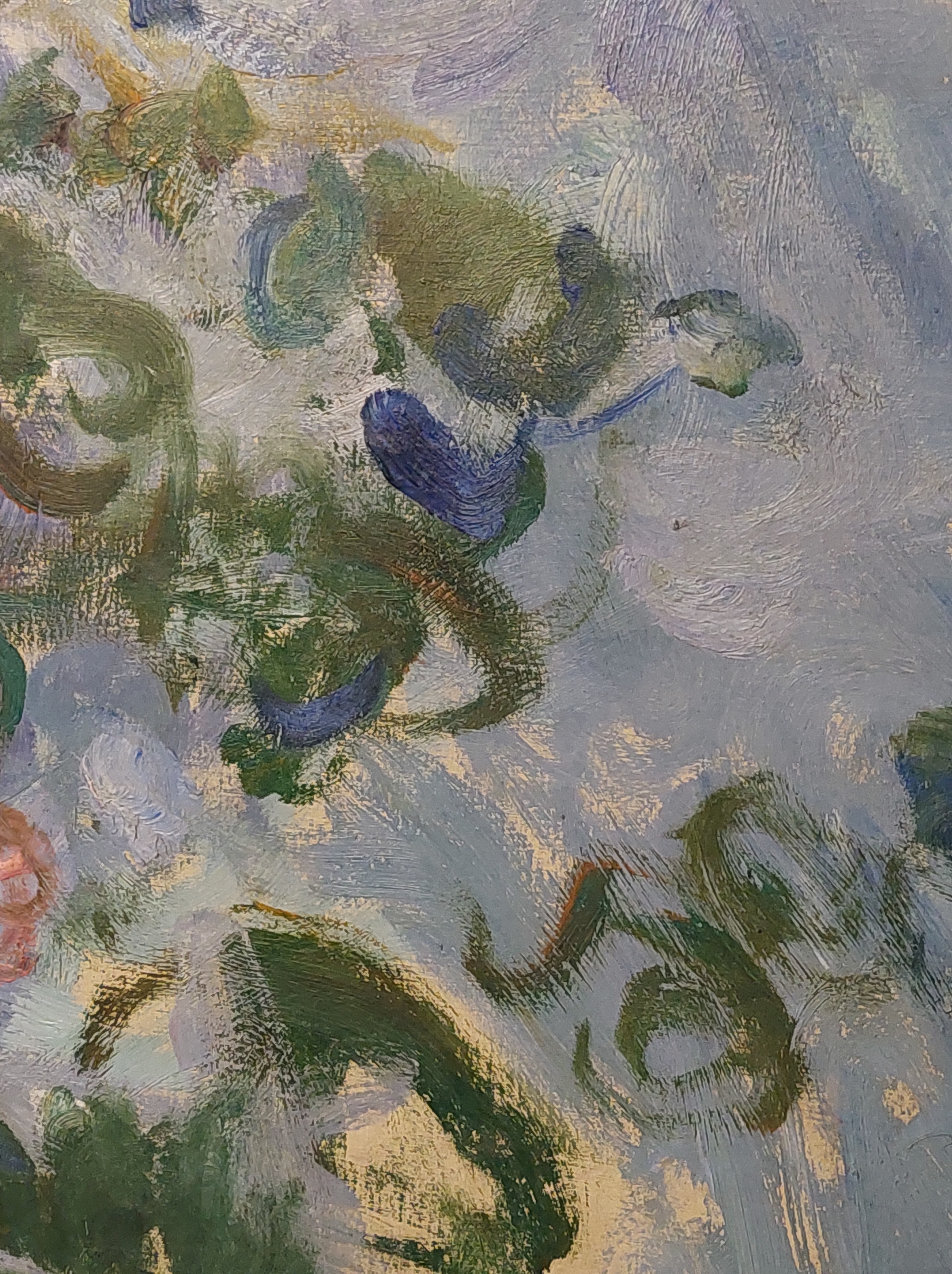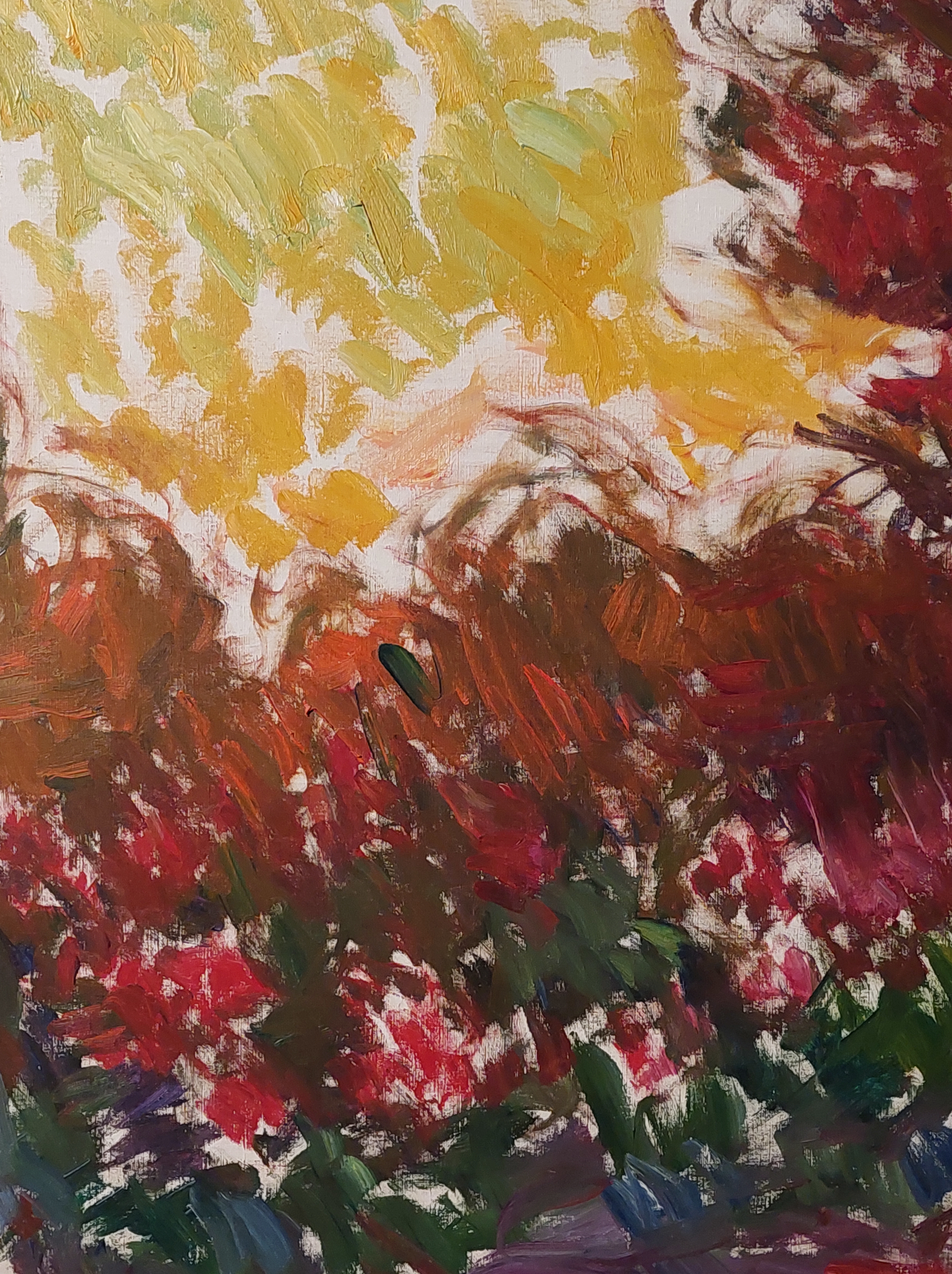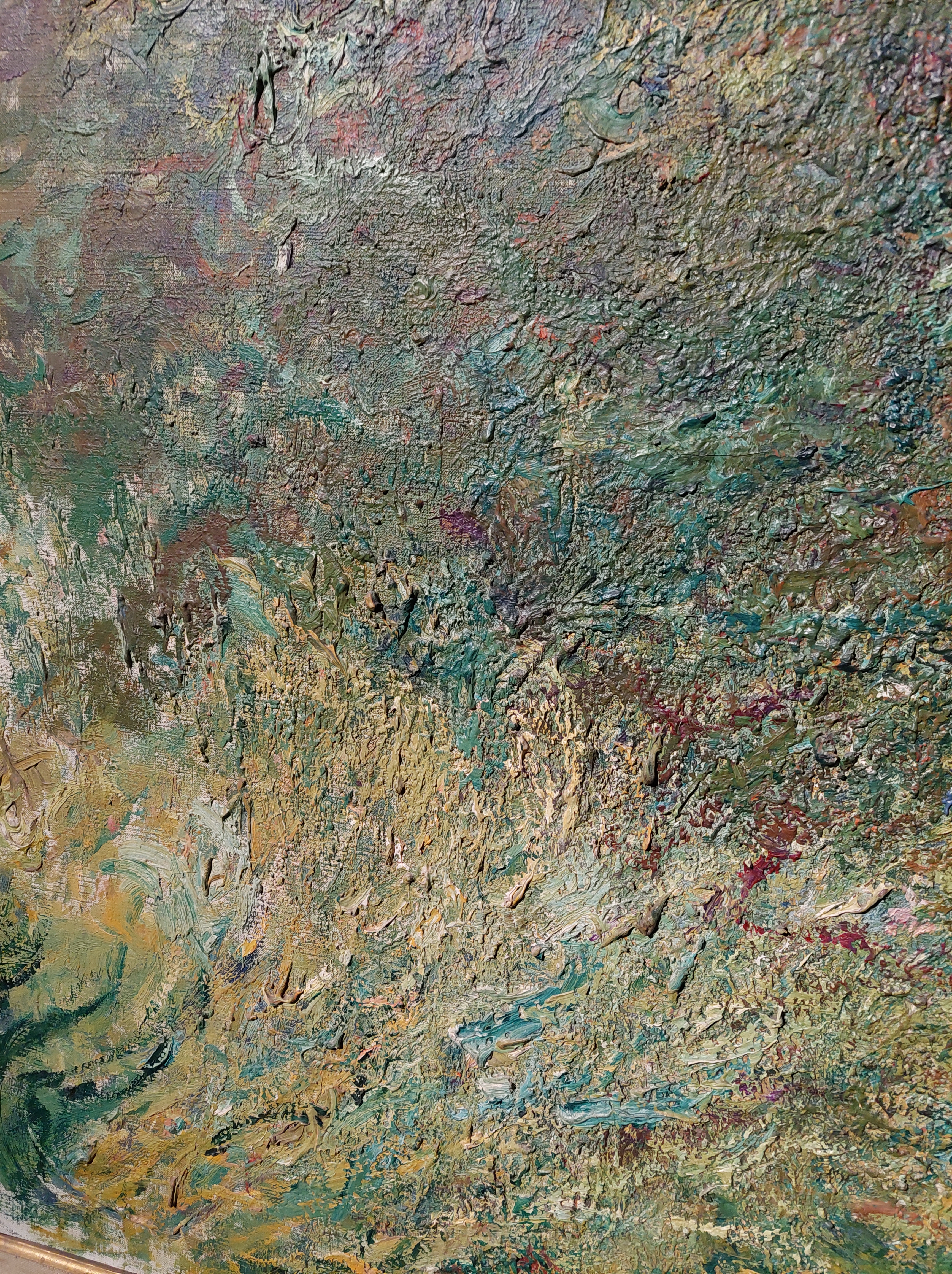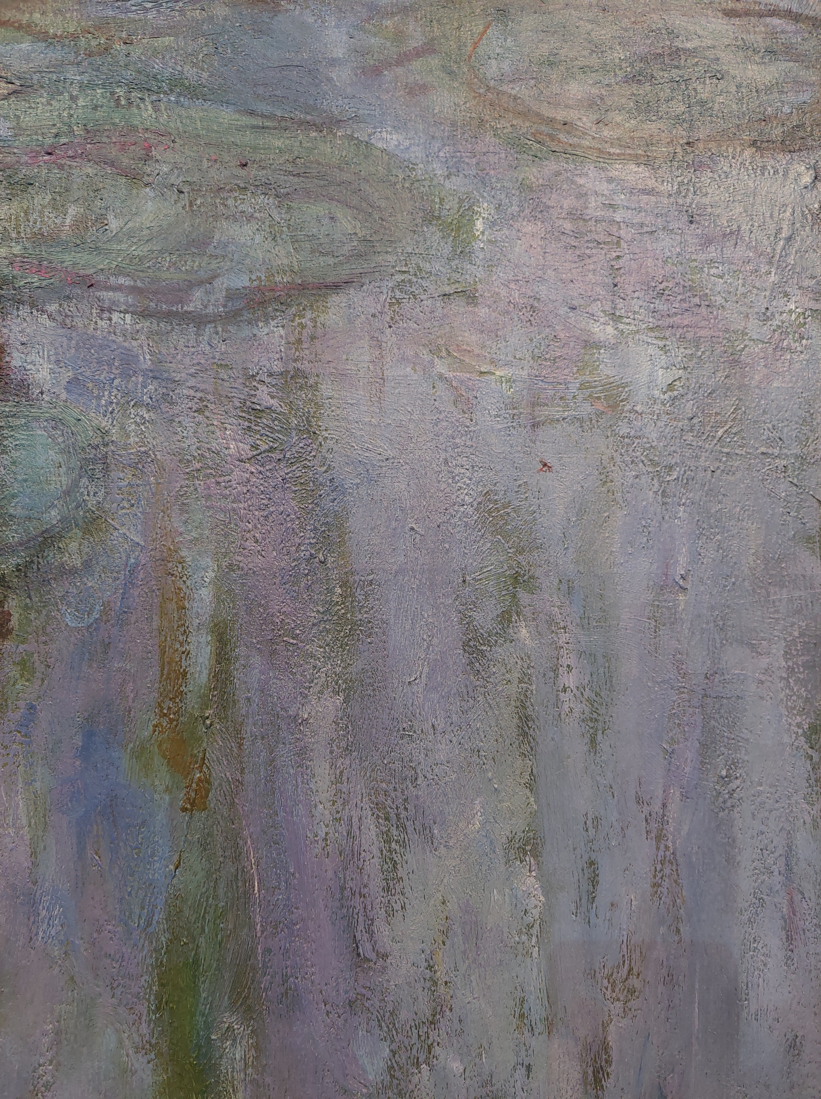 Le ninfee del 1916/1919, quadro ad olio di 130×152, commuove fino alle lacrime. Guardandolo, osservandolo, il parlottio degli altri visitatori cede al silenzio. Dalla tela emerge con chiarezza la calma e la maestosità sottile della natura.