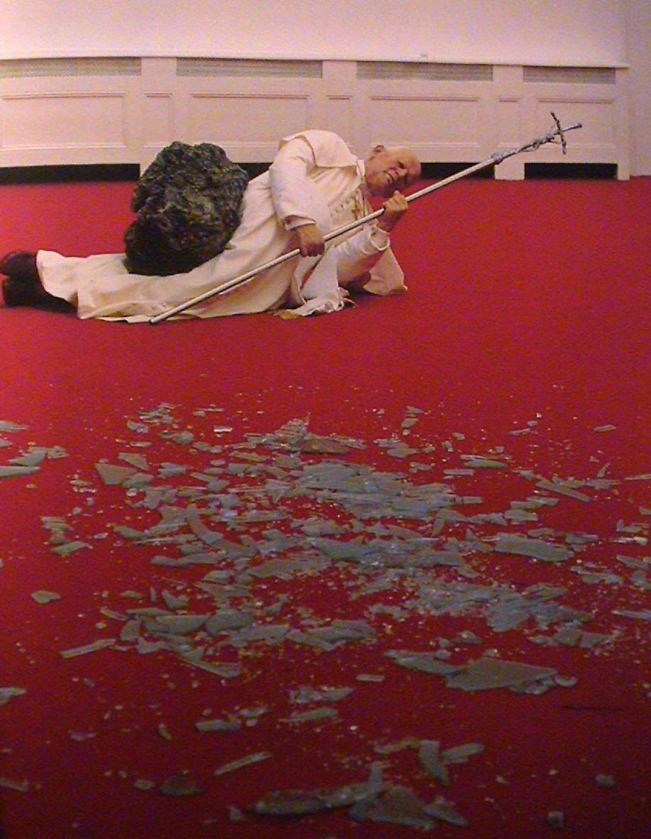 Però, però, nel caso in causa la questione si fa più spessa, dato che questa volta non si tratta di collocare in altri ambienti una merce al fine di suscitare spiazzamento e riflessione, quanto di una statua più o meno definita nei suoi elementi e nel suo aspetto finale (Druet sostiene che da Cattelan arrivassero solo vaghe indicazioni su come realizzare le statue) la cui perfetta realizzazione è certamente un elemento essenziale alla buona riuscita dell’operazione culturale.