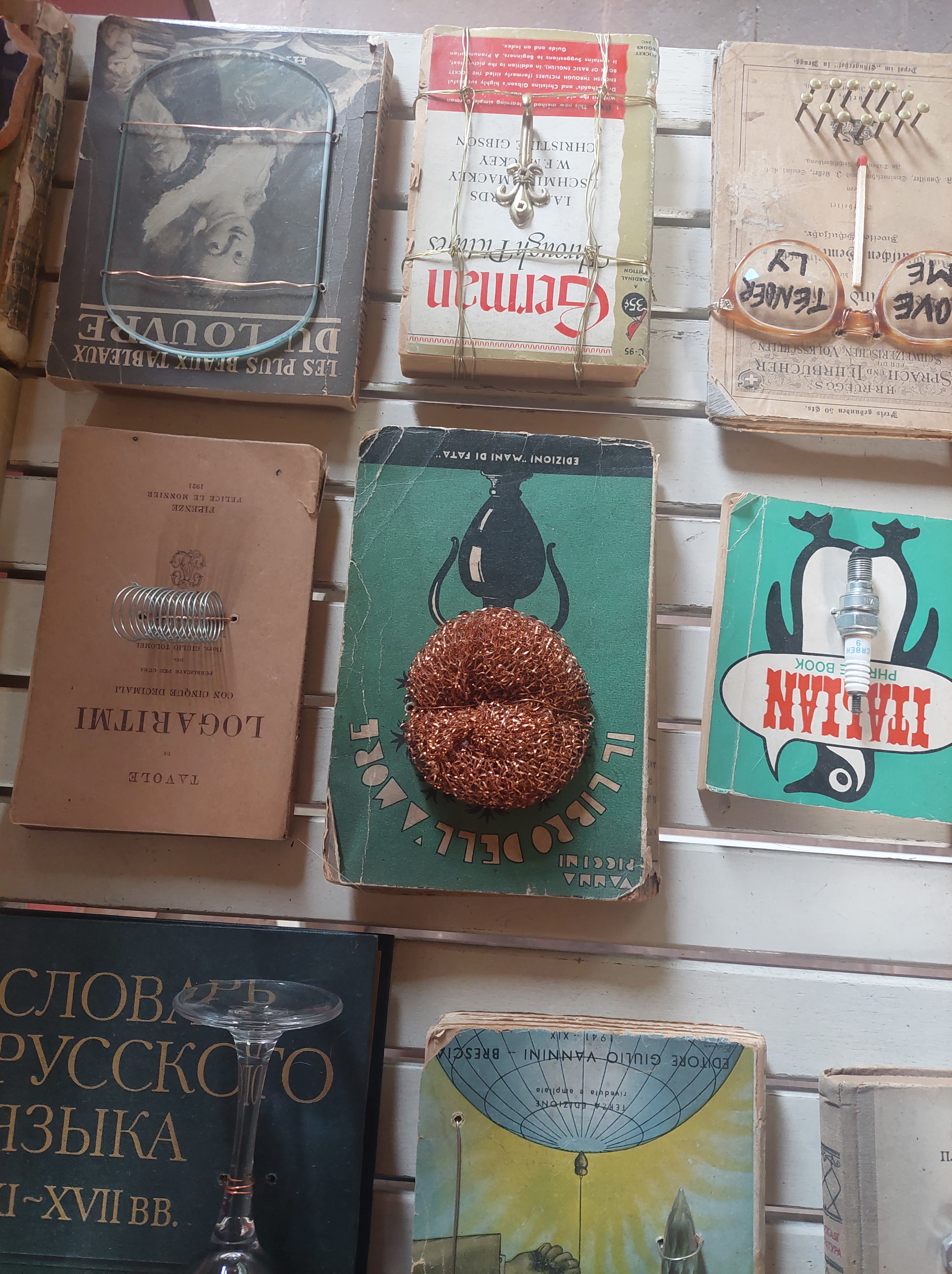La meraviglia e lo stupore si alternano al sorriso fino allo strazio per la serie dei libri incatenati e imbullonati.