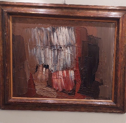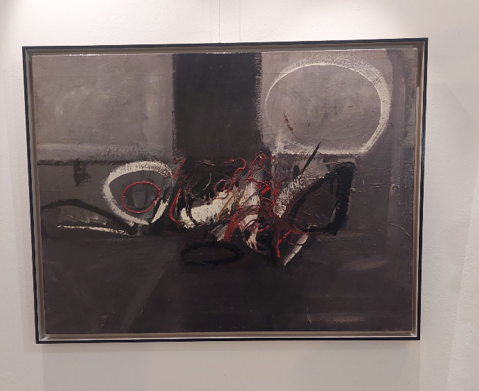 Nella piccola sala sono esposte quattordici opere di sette artisti che a vario titolo si sono rivolti (o possono essere ricompresi) nell’Informale. Gli artisti vanno da Chighine (1914/1974) a Canepa (1958), passando per Ugolini (1918/2006), Scanavino (1922/1986), Ruggeri (1930/2009), Sturla (1930) e Lavagnino (1935/1999). A memoria è la prima volta che a Chiavari siano esposte di pittori che in vita hanno avuto l’onore di una sala riservata alla Biennale di Venezia (Chighine e Scanavino).