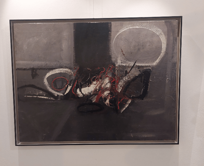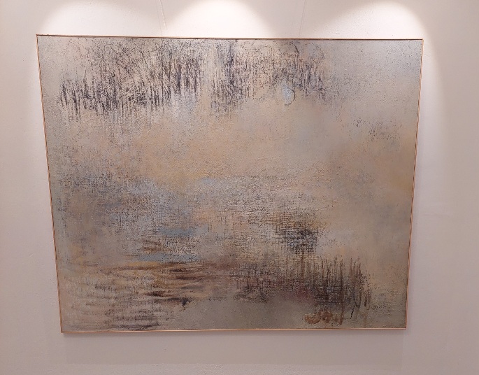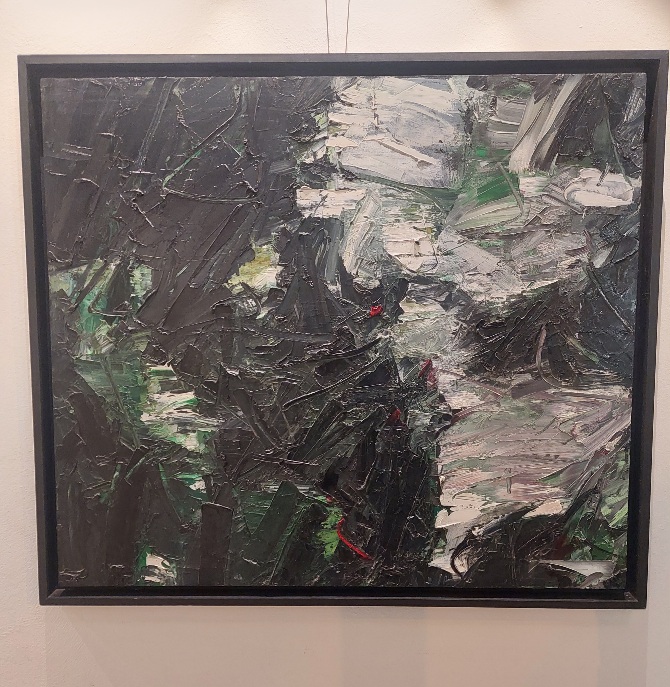 I quadri esposti sono tutti di ottimo livello e, come si è detto, danno conto di come l’Informale abbia dato frutti diversi (anche molto) a seconda dei decenni di produzione e delle sensibilità di ciascuno. Se, infatti, alla trattenuta ricerca naturalistica di Lavagnino corrisponde la lirica liquida ed onirica di Sturla, al rigore espressivo di Ugolini fanno da controcanto i due Ruggeri, uno Scanavino ed uno dei tre Chighine (negli altri due risuonano echi di una certo timbro di De Stael). Per ragioni anagrafiche la sintesi dovrebbe essere attribuita a Maura Canepa, nelle cui due opere esposte l’informale vira verso un certo espressionismo di matrice statunitense.